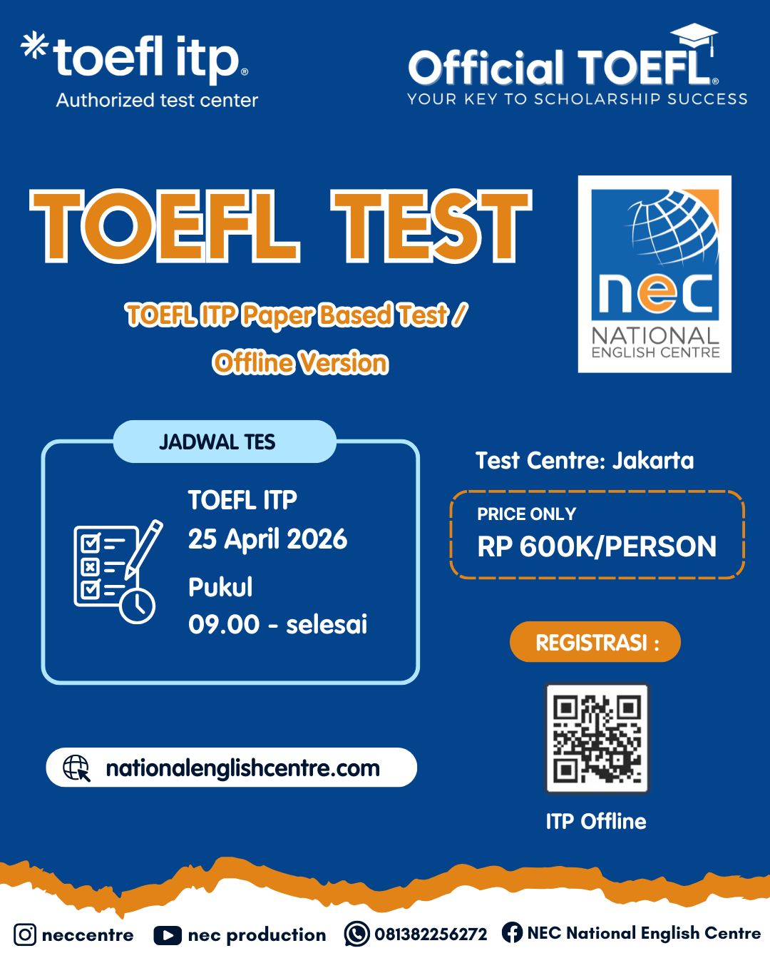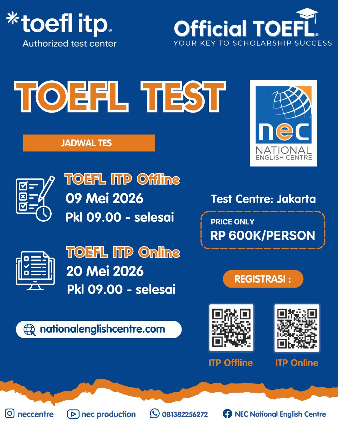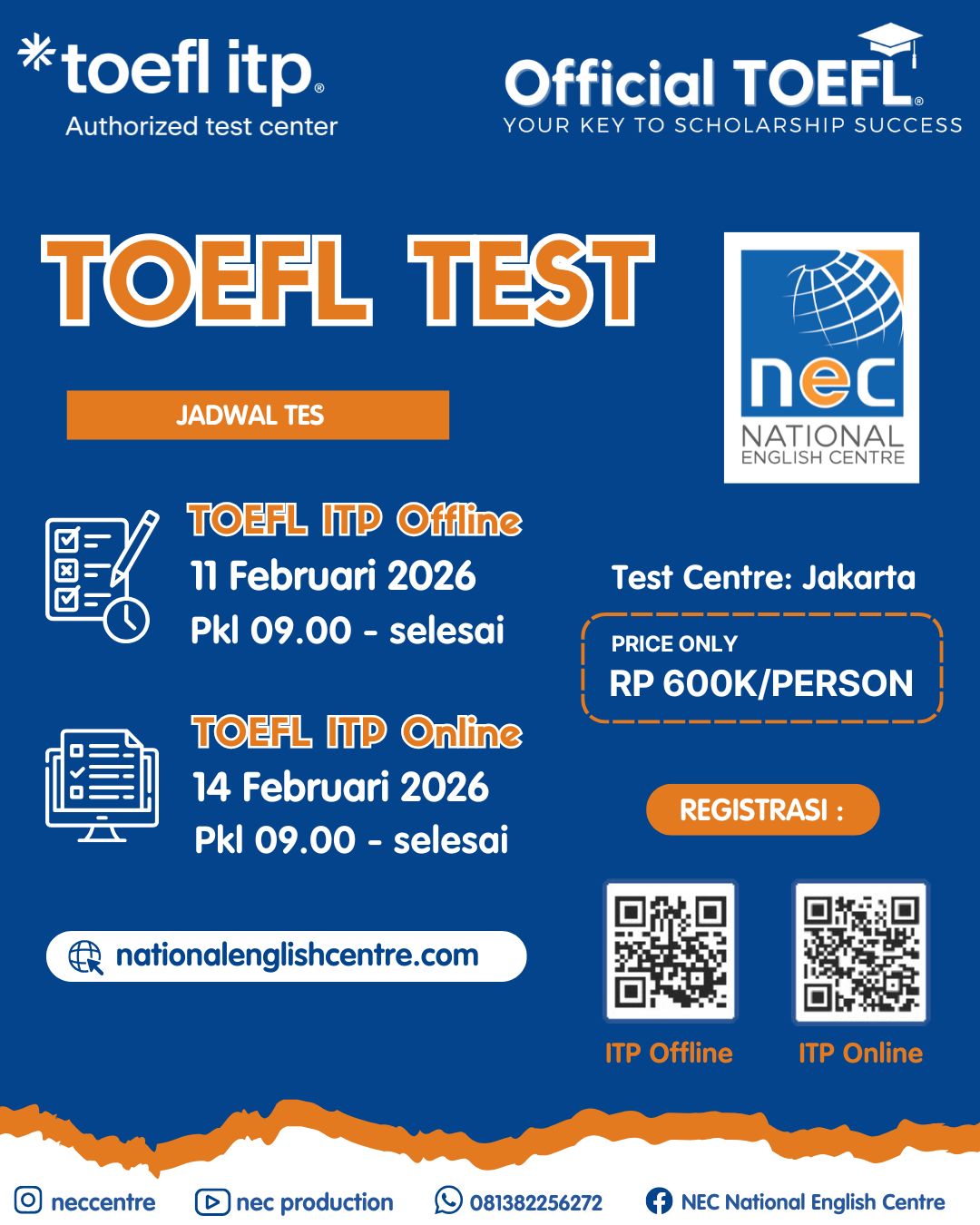 Dengan 10x pertemuan, skor TOEFL saya naik dari 480 menjadi 543 dan sekarang saya sudah lulus beasiswa Kemenhan…… Terimakasih NEC.