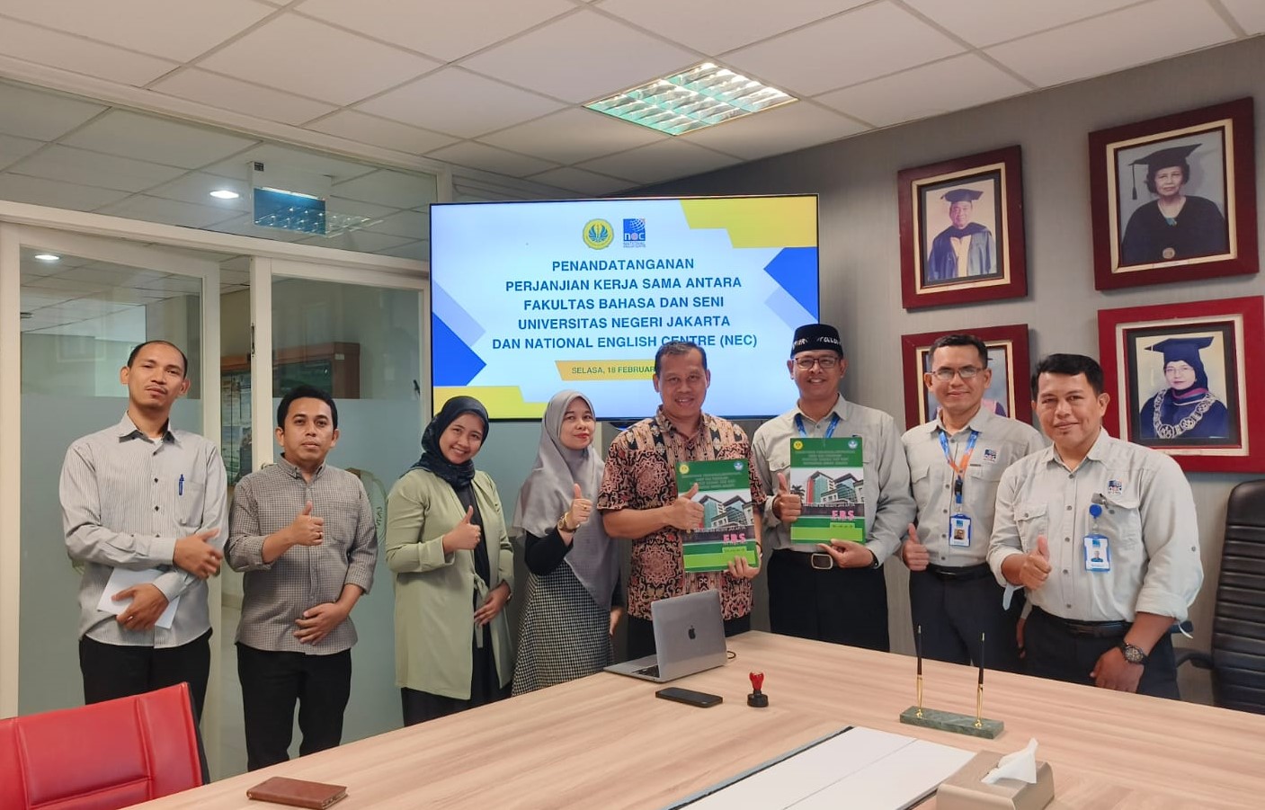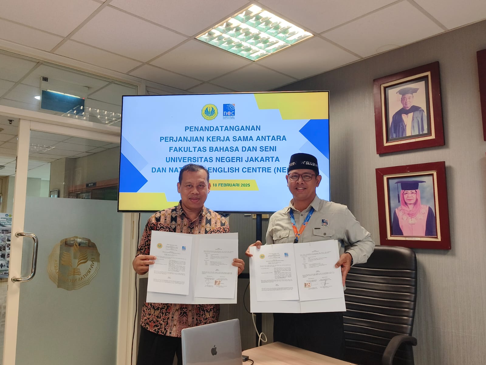 Penandatanganan Perjanjian Kerja Sama NEC dengan FBS UNJ February 19, 2025 / News / Leave a Comment HomeNewsPenandatanganan Perjanjian Kerja Sama NEC dengan FBS UNJ Jakarta, 18 Februari 2025. National English Centre yang di wakili oleh Bapak Muhammad Saifuddin, S. Pd., M.M. melakukan penandatanganan Perjanjian Kerja Sama dengan Fakultas Bahasa dan Seni (FBS) Universitas Negeri Jakarta (UNJ)